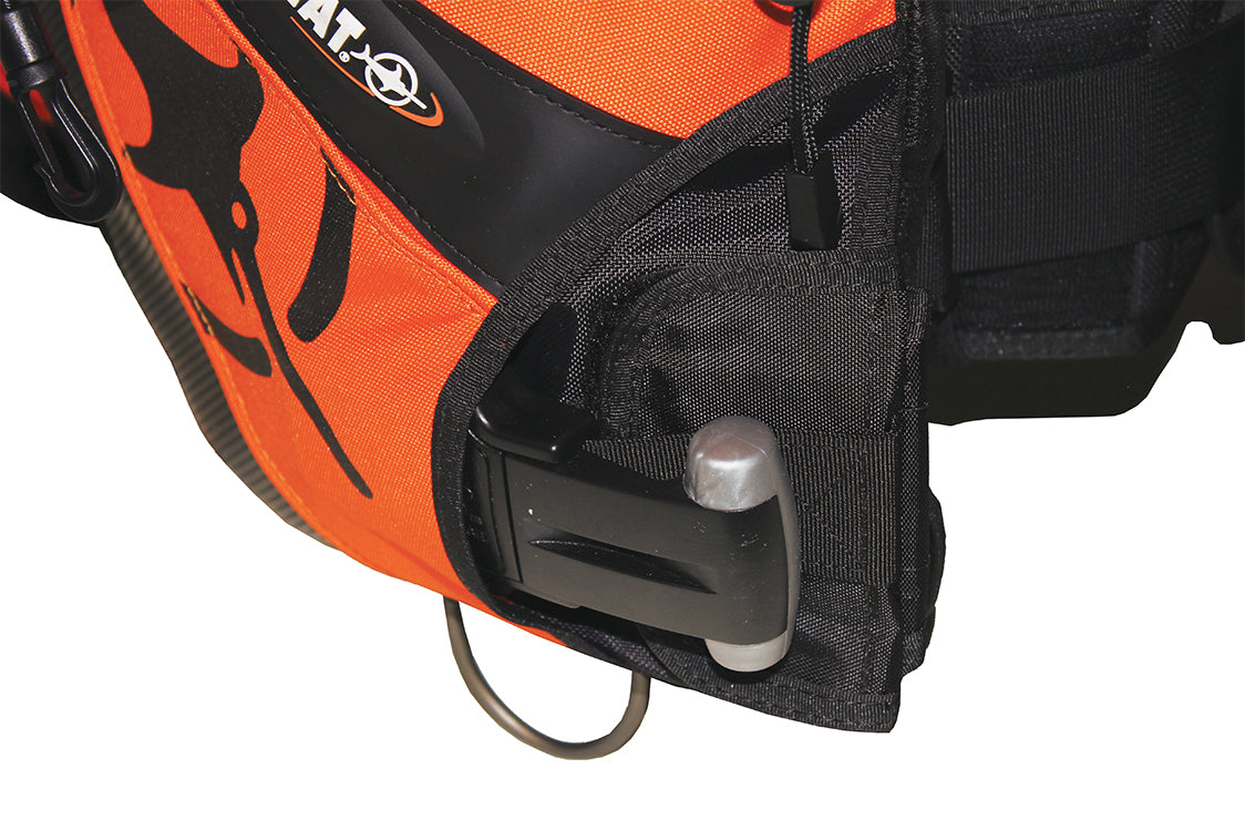 2 bolsillos de lastre delanteros de 5kg con sistema de zafado y 2 bolsillos de lastre fijos de 2,5kg en los fuelles traseros